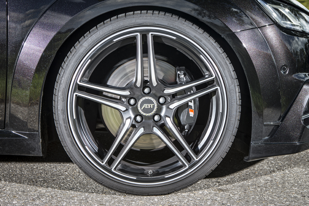 The athleticism of the Audi TTS has only gotten better with some ABT Sportsline training. The chassis benefits from new ABT suspension springs that reduce the ride height by 35 mm up front and 30 mm at the rear, while new sway bars keep that body tight. The featured ABT FR alloy wheels or DR, ER-C, and CR wheels can be fitted with 24- and 30 mm front and rear spacers, respectively.
