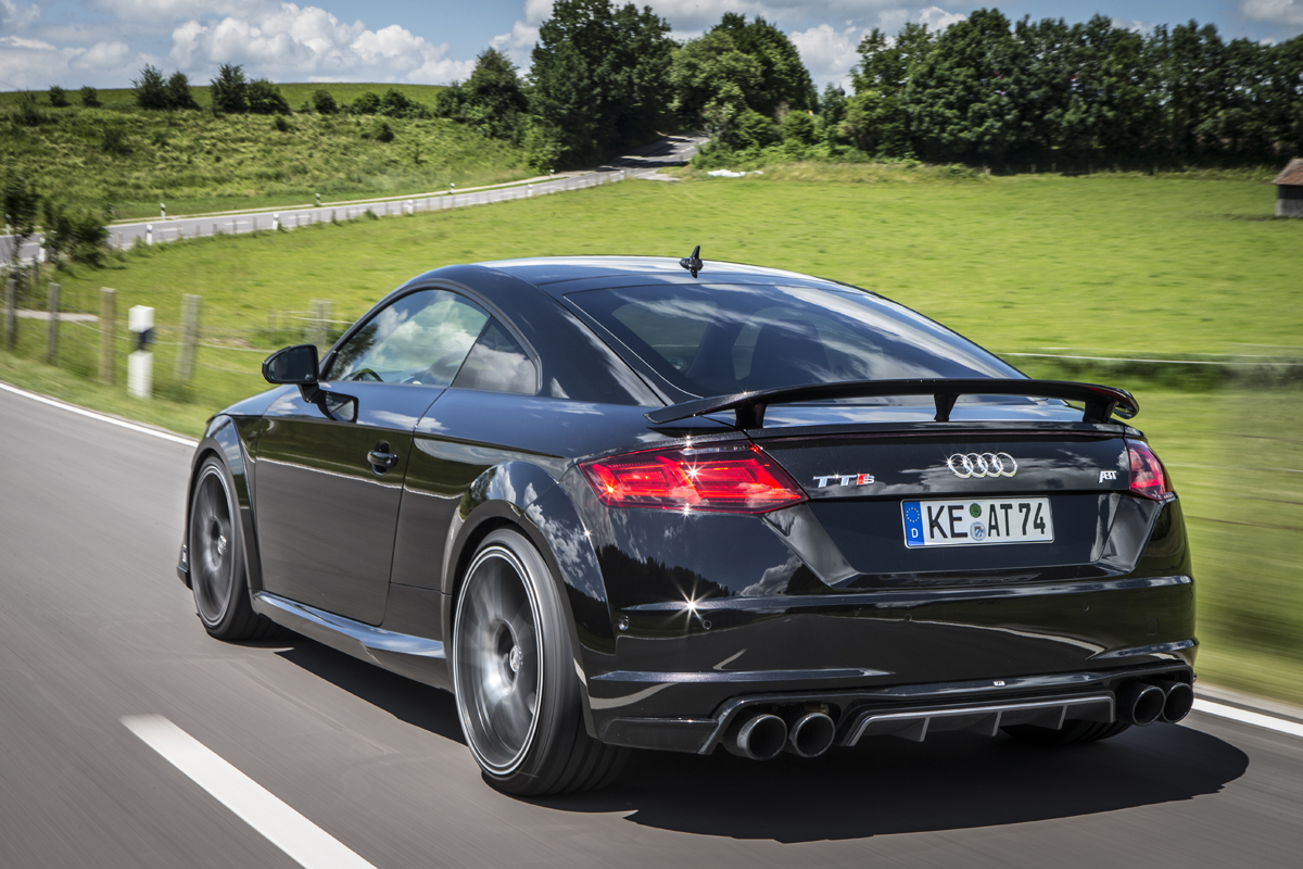 Things only get better from there. Visually, the ABT Sportsline Audi TTS gets a new front skirt add-on and pair of side mirrors to cut through air. A new fixed rear wing generates downforce where it counts and a diffuser sits below with integrated 102 mm quad tailpipes with etched ABT logos. The exhaust can upgraded with a new Y-pipe with sport catalytic converter for a meaner growl.