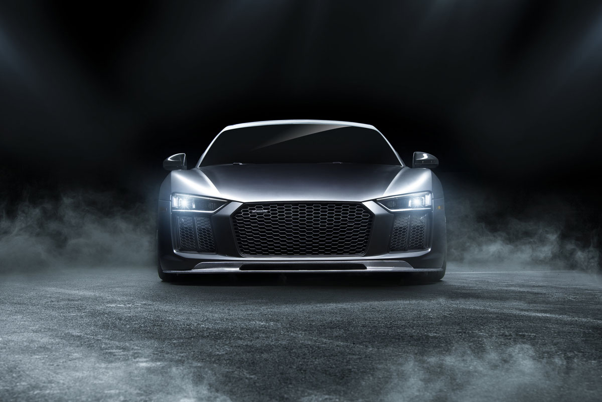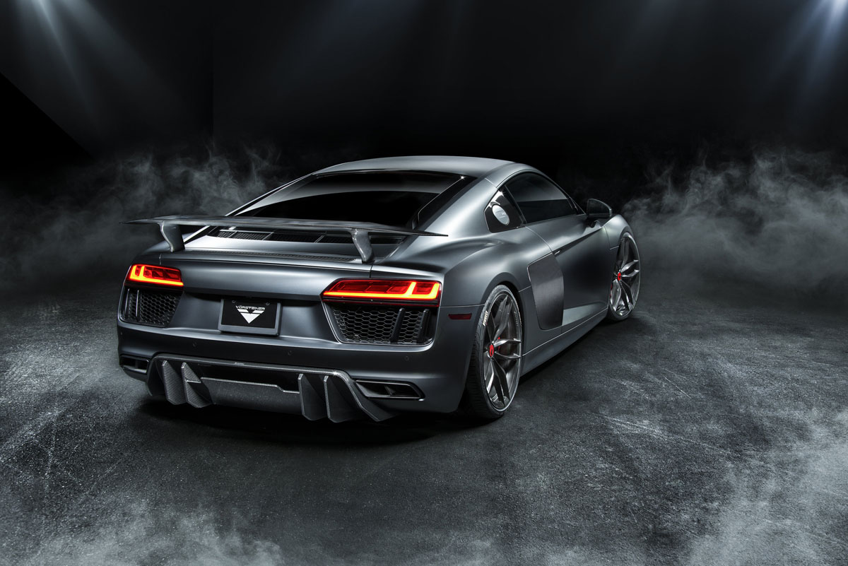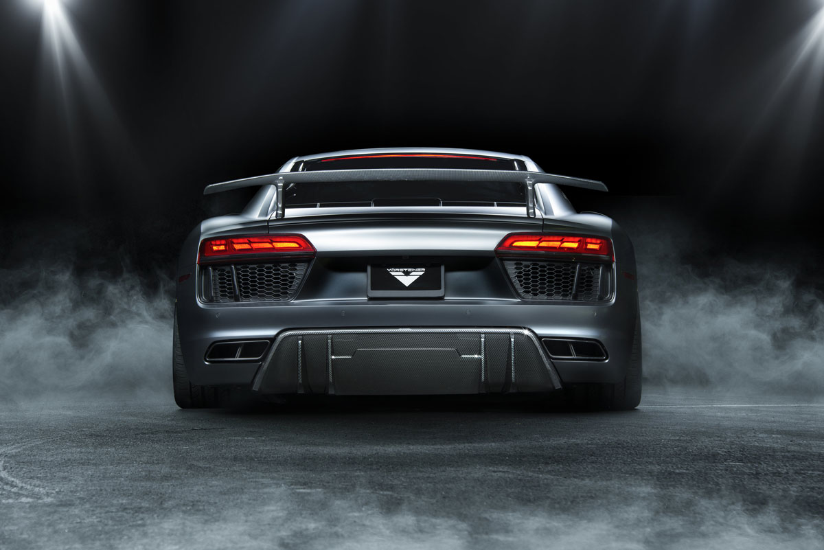 The powerful mid-engined Vorsteiner Audi R8 V-GT has lightweight aerodynamically-optimized add-ons that perfectly integrate with the super car’s design.