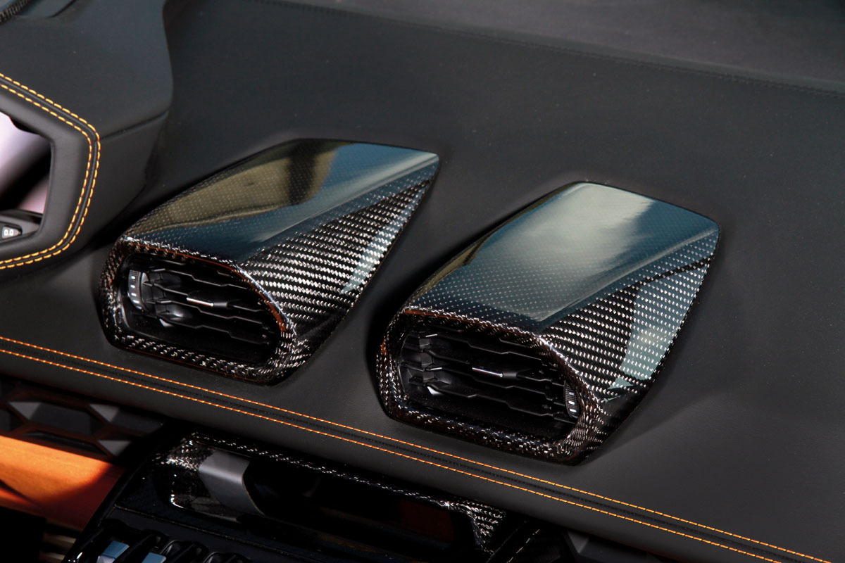 On the performance side of things, the 5.2-liter, naturally-aspirated V-10 engine was outfitted with some basic modifications that provide a healthy dose of power. A new in-house exhaust system with mechanically-controlled valves increases output by 12 horsepower and 11 lb-ft. of torque while also cutting 22 lbs. of weight. Those that want to save even more weight can opt for the Akrapovic titanium exhaust that cuts a total of 44 lbs. while increasing output by 20 horsepower and 16 lb-ft. of torque. A new free-flow intake system is also used to suck in more air with greater efficiency.