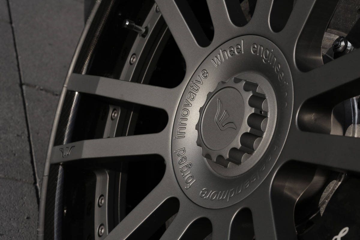 In the other corner is the black Lamborghini Gallardo Superleggera. The more tamed of the two bulls was given a visual makeover rather than focusing on its engine. The WheelsandMore team installed their F.I.W.E. three-piece forged wheels in a 9.5 x 20 and 12.0 x 20 fitment with forged centers. A dark carbon-look finish has been applied to each wheel to complement the factory black paint. Additionally, new 245/30/20 and 305/25/20 high-performance tires were also installed.