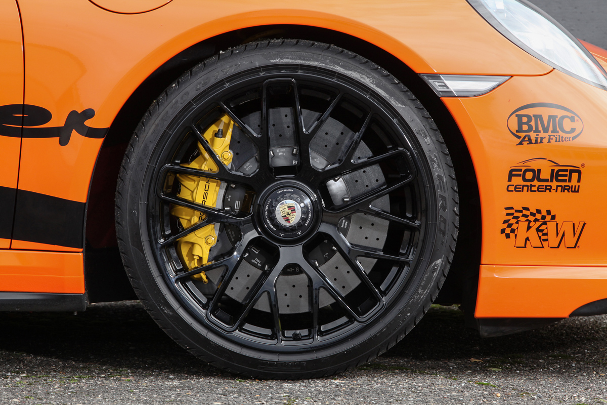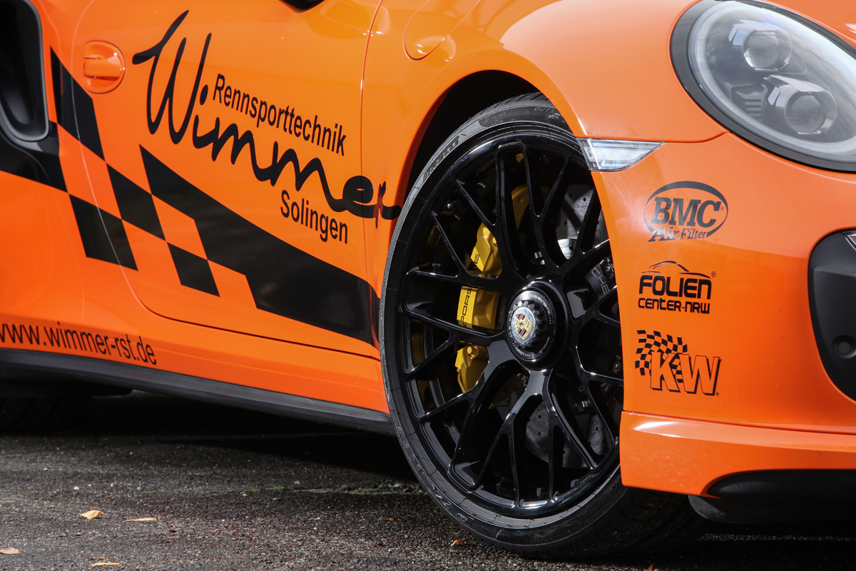 While the focus for the Wimmer RST team was the engine, the Porsche 911 Turbo S Cabriolet also got some style. The entire super car was wrapped in an eye-catching orange vinyl to make it stand out from the crowd, just in case the performance doesn’t. Additionally, a full KW Club Sport suspension was installed and the PDK transmission can be modified to handle the extra power as an option.